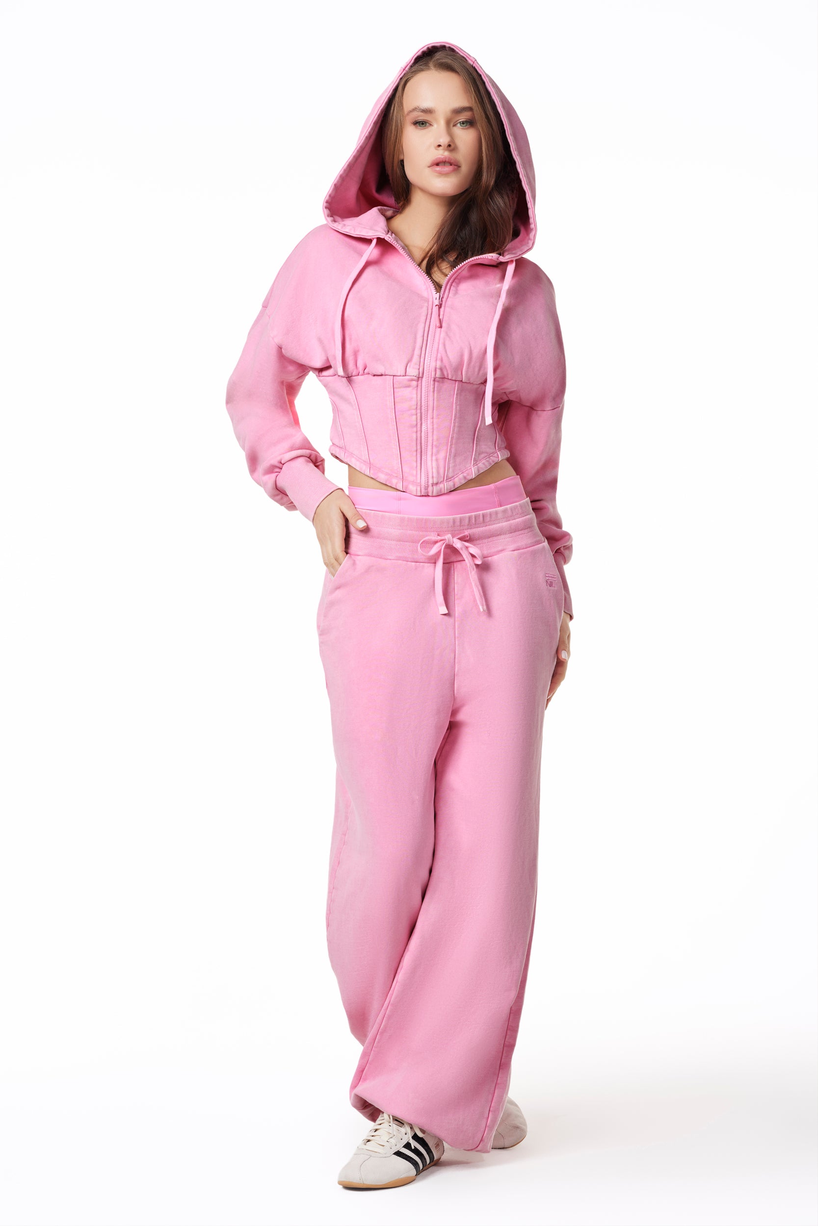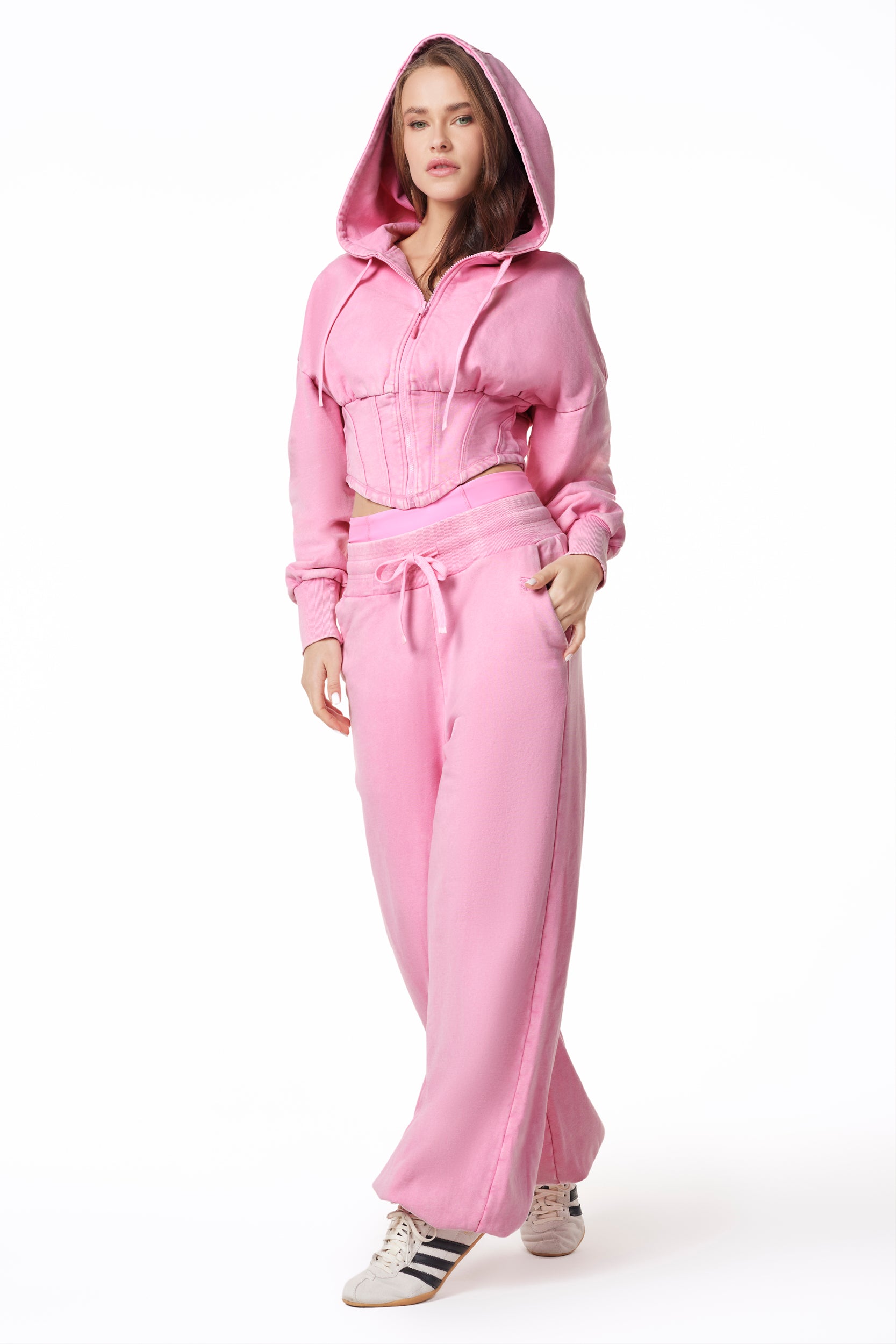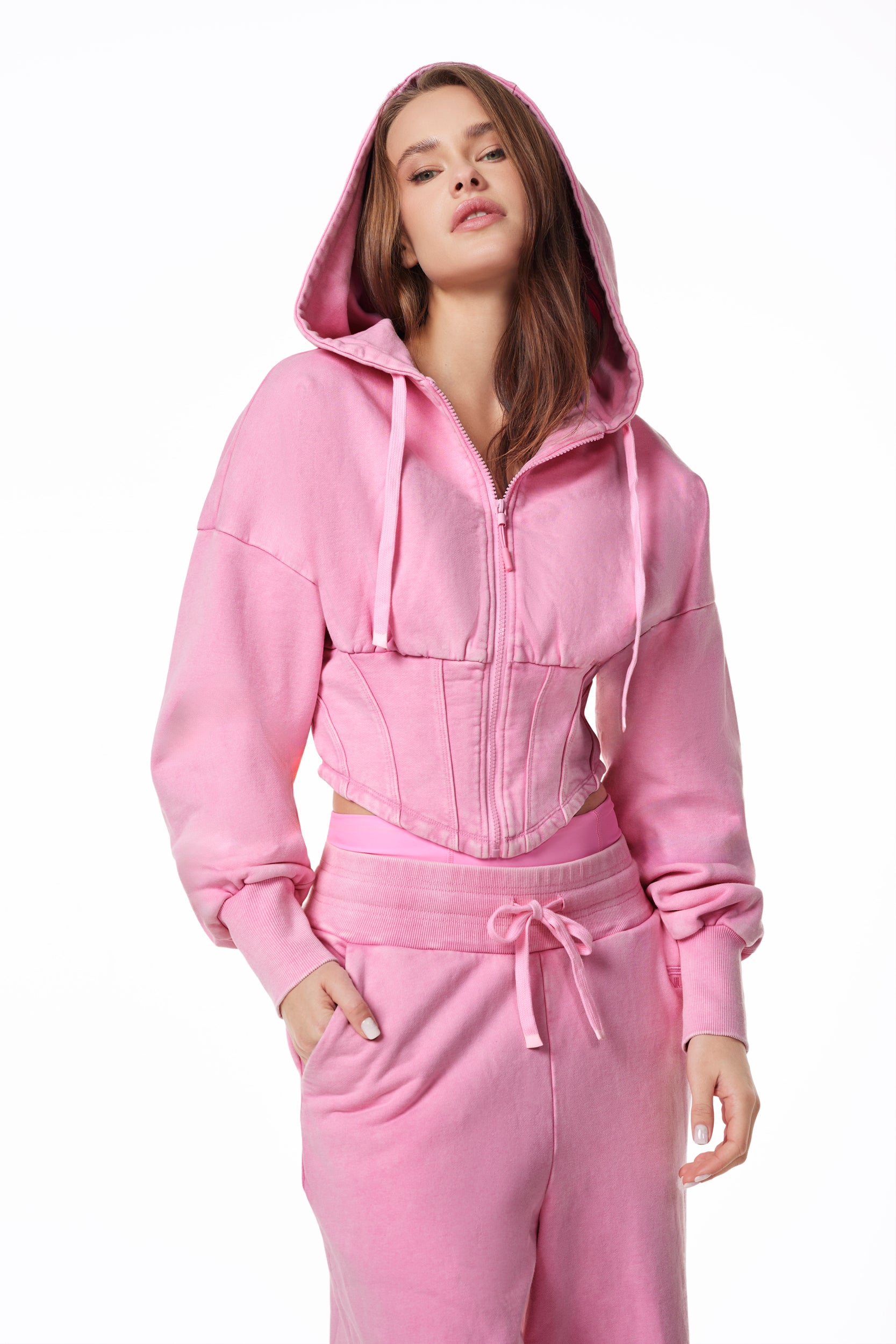 Meet the Calgary Corset Zip Jacket — the sister style & snow wash color to our Amsterdam French Terry set and the ultimate sculpted layer. Crafted from premium 100% cotton French Terry with a snow-washed finish, this zip jacket delivers a lived-in look with refined structure.
