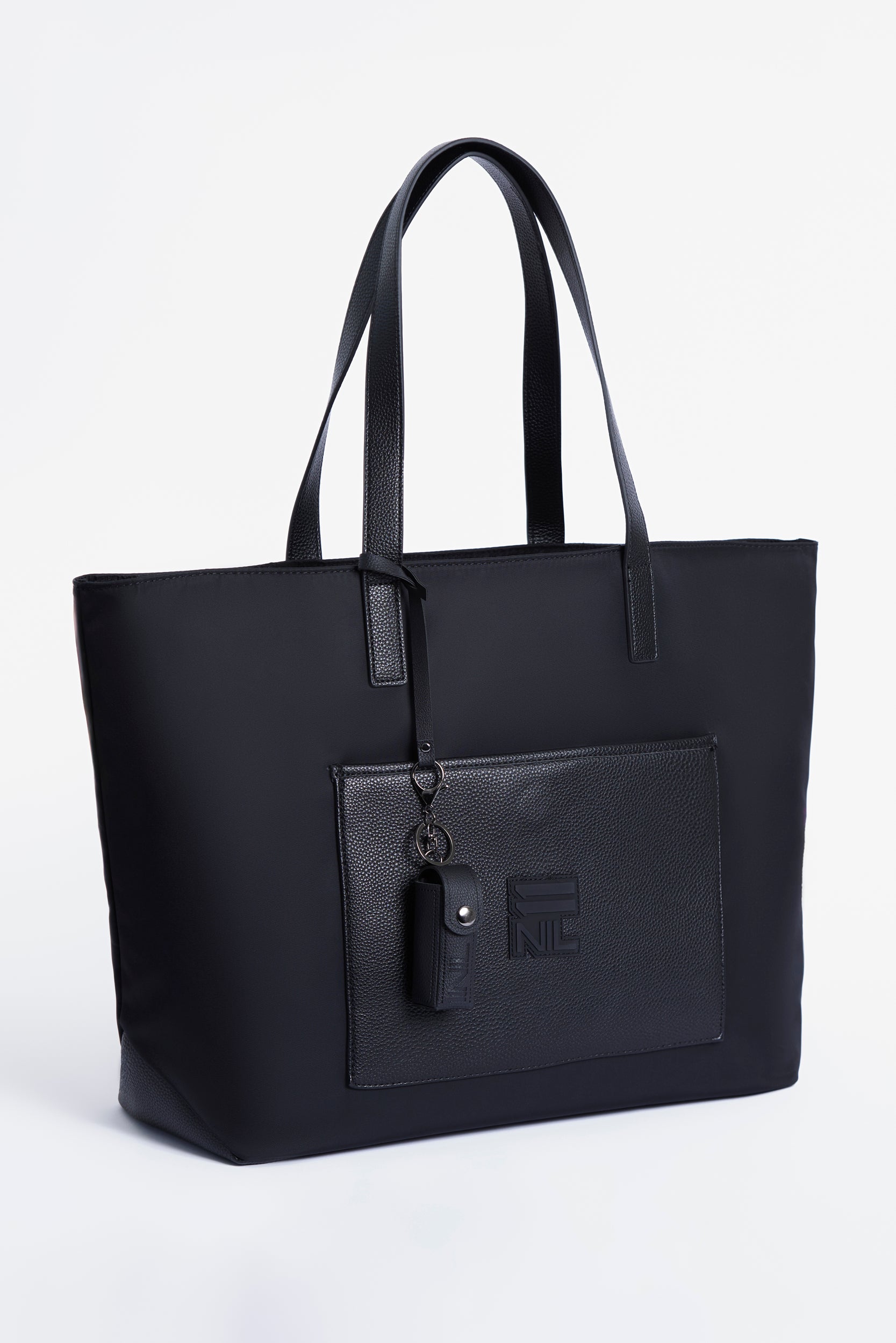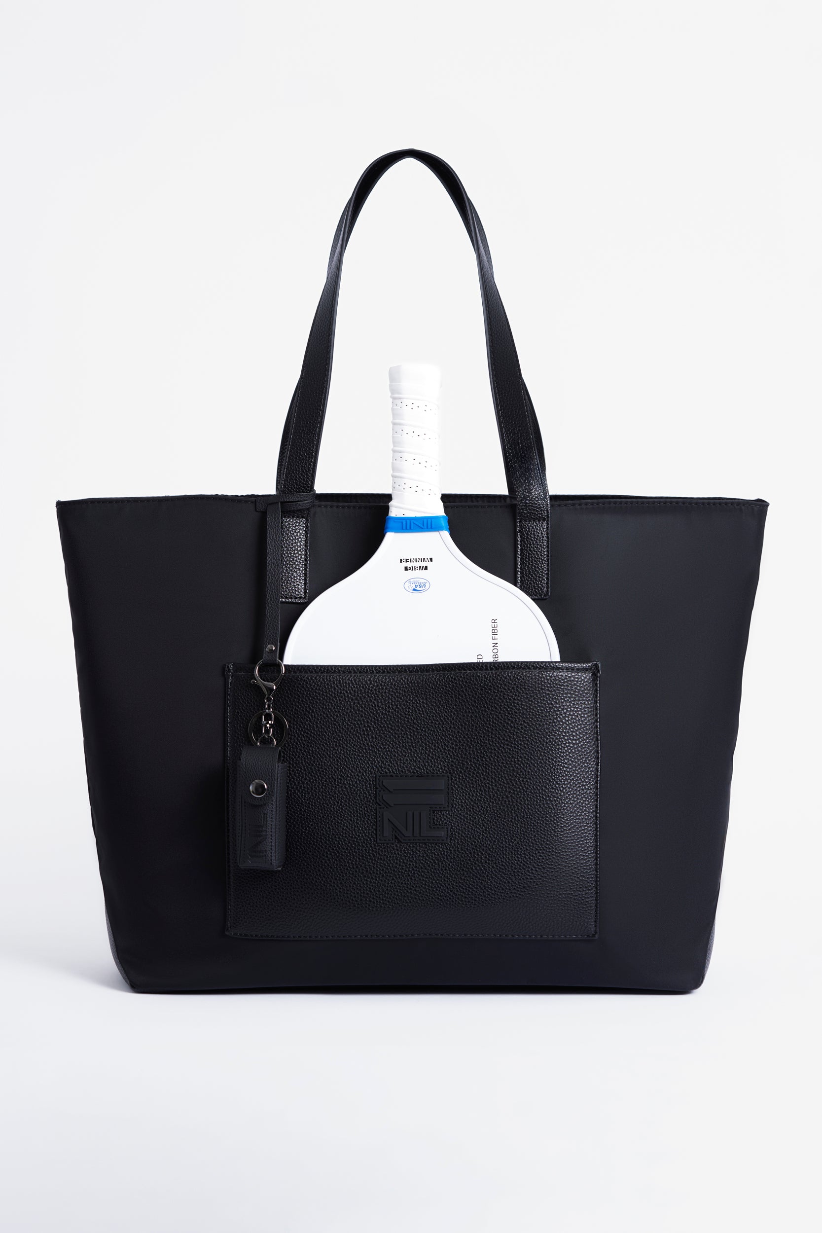 The On the Move Oversized Tote blends versatility & style. Made from durable nylon, it features long shoulder straps, a rubberized 11NIL logo, & a sleek paddle holder. A padded interior, secure zippered pocket, & removable lipstick keychain holder add function & refinement - designed for sport & city life alike.