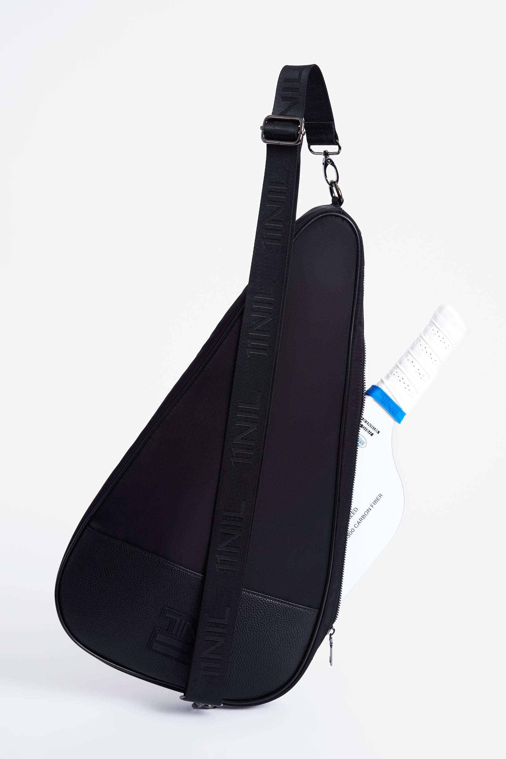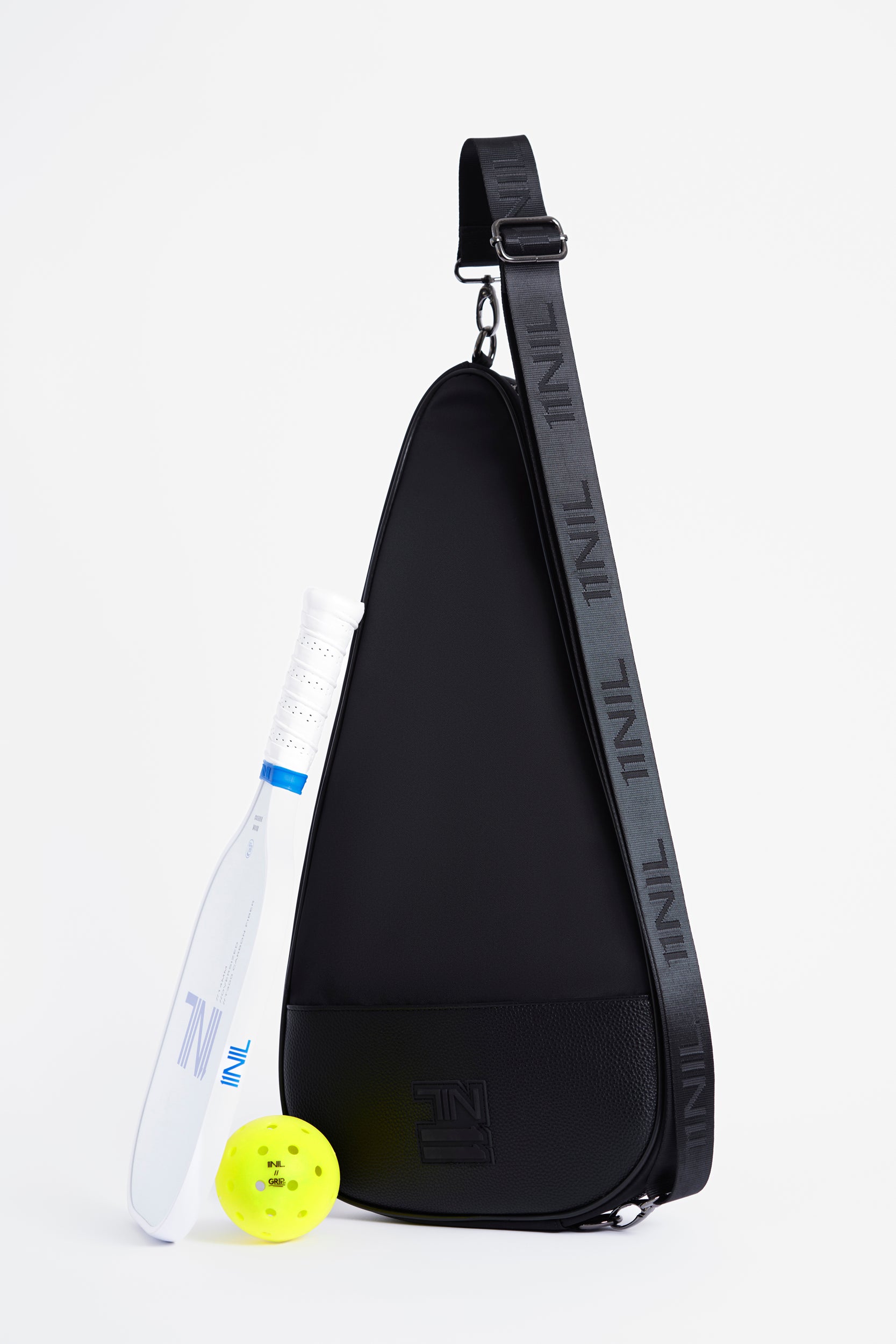 The 11NIL Paddle Sling is a streamlined carry solution for pickleball, padel, & paddle tennis. Made from durable nylon with vegan leather trim, it balances protection & style. An adjustable 11NIL-branded strap ensures a comfortable fit, while a silicone logo patch adds a refined touch. A discreet zippered pocket keeps essentials secure, so you can move without compromise.