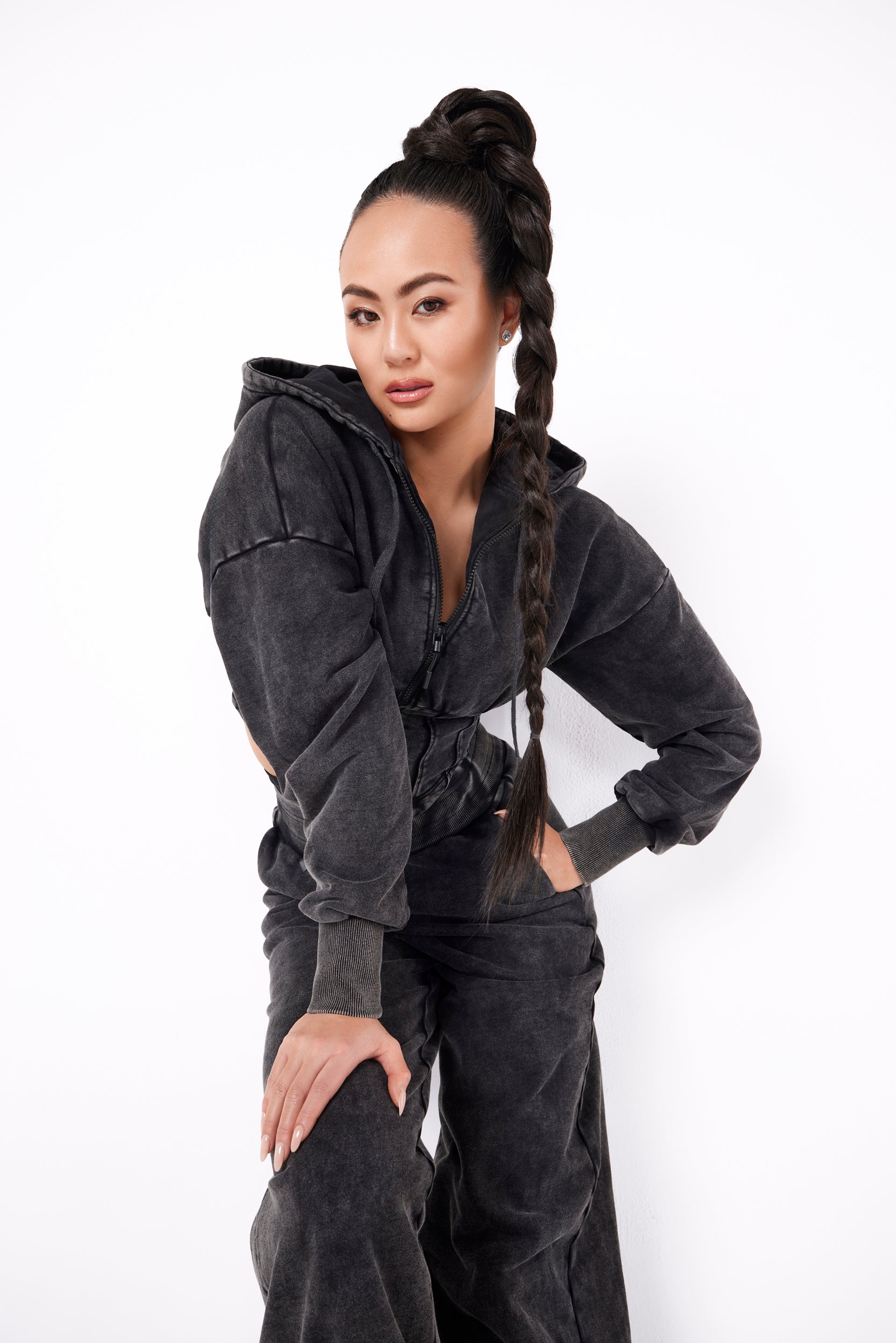 Meet the Calgary Corset Zip Jacket — the sister style & snow wash color to our Amsterdam French Terry set and the ultimate sculpted layer. Crafted from premium 100% cotton French Terry with a snow-washed finish, this zip jacket delivers a lived-in look with refined structure.