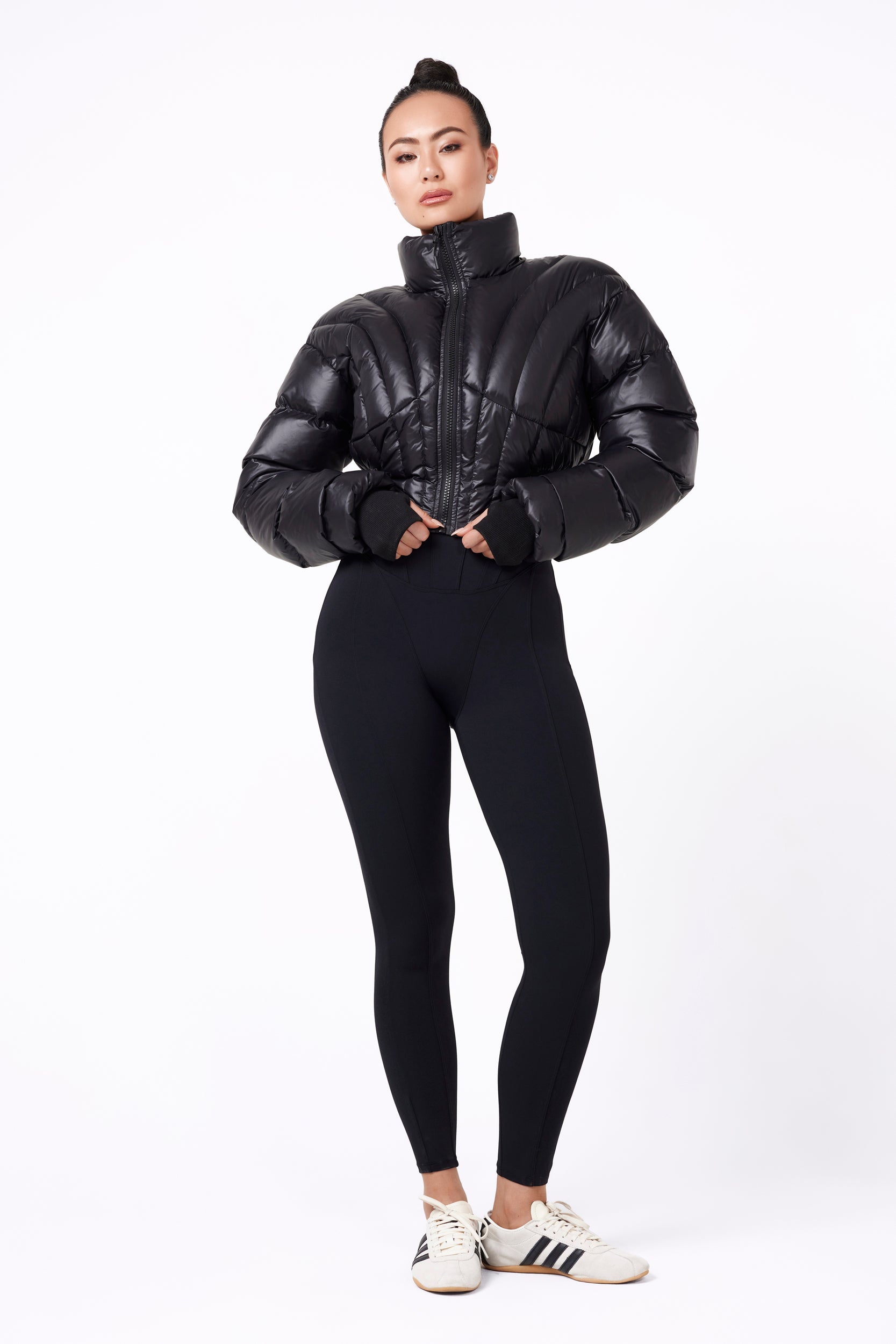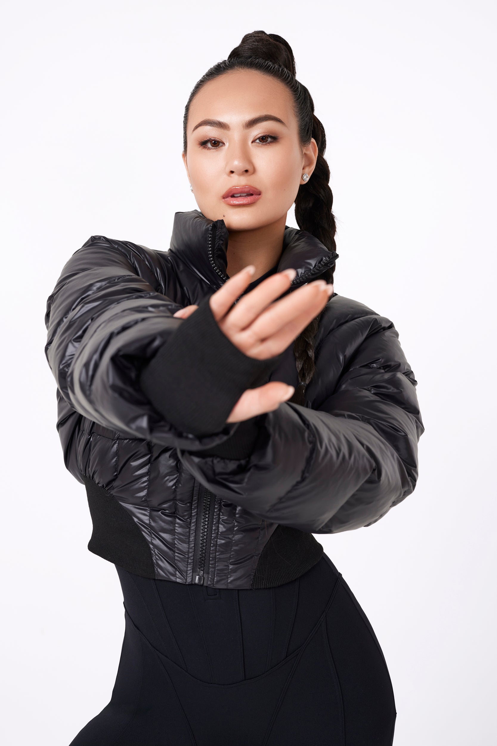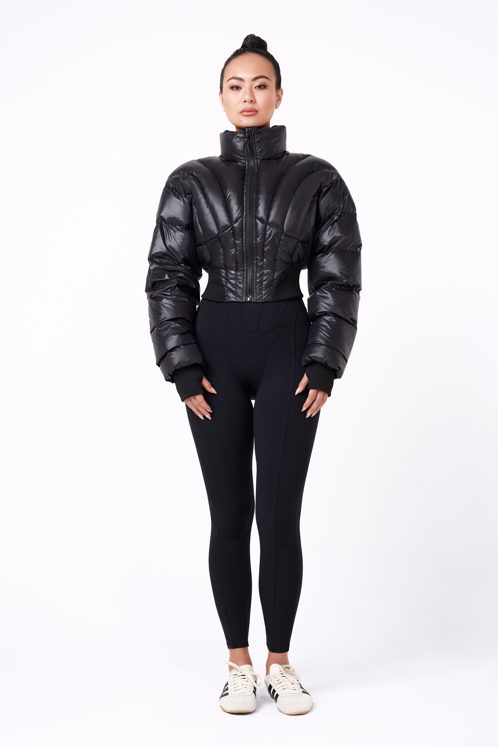 Meet the Aspen Corset Puffer Jacket — where alpine warmth meets sculpted design. Designed with a long-crop silhouette, this elevated puffer hits at the perfect point to flatter the waist while keeping proportions sharp. Crafted with luxurious down + feather fill and quilted in a corset-inspired pattern, it defines, shapes, and contours with ease.