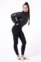 A high funnel neck collar adds warmth and dramatic structure, while rib-contour waist shaping subtly pulls you in for a snatched, hourglass effect — without sacrificing comfort or movement. Finished with thumbhole cuffs for added warmth and a sleek, stay-put sleeve, the long-crop length makes it ideal for layering over dresses, sets, and elevated cold-weather looks.