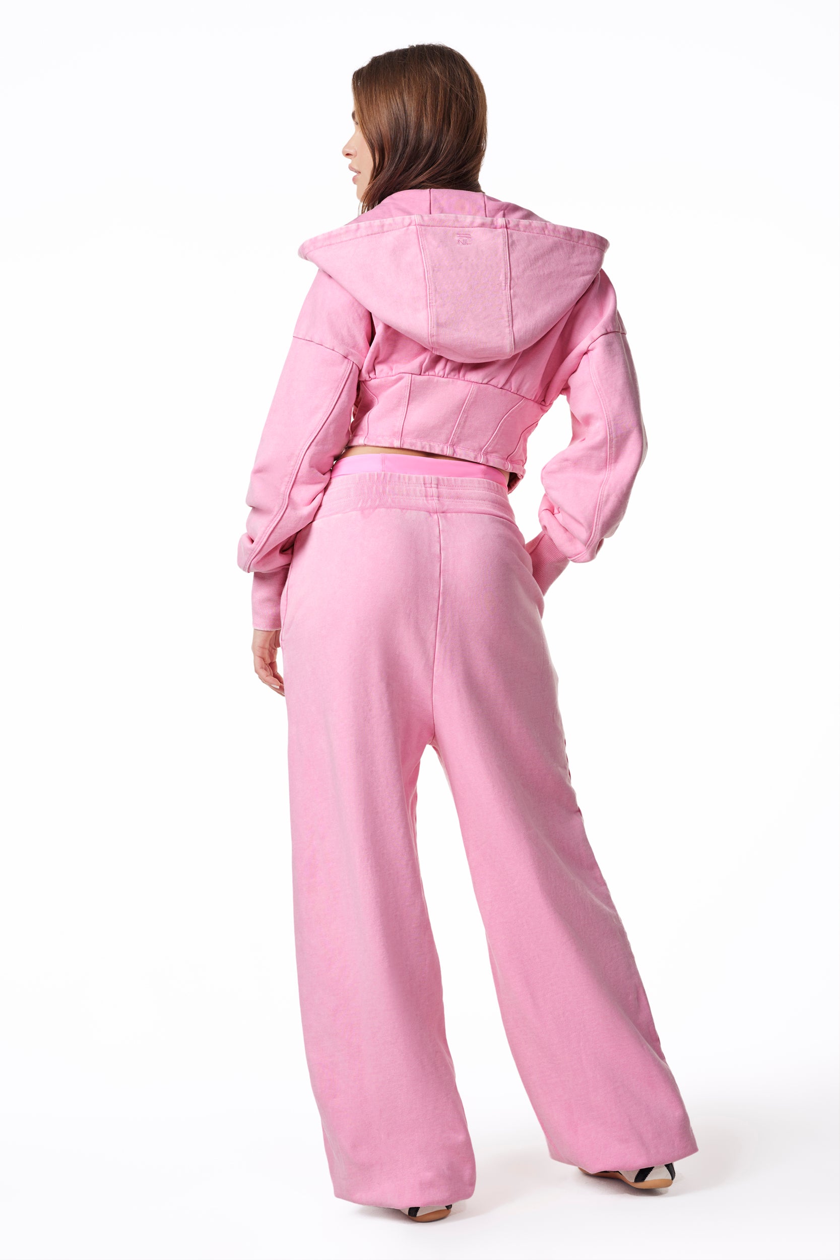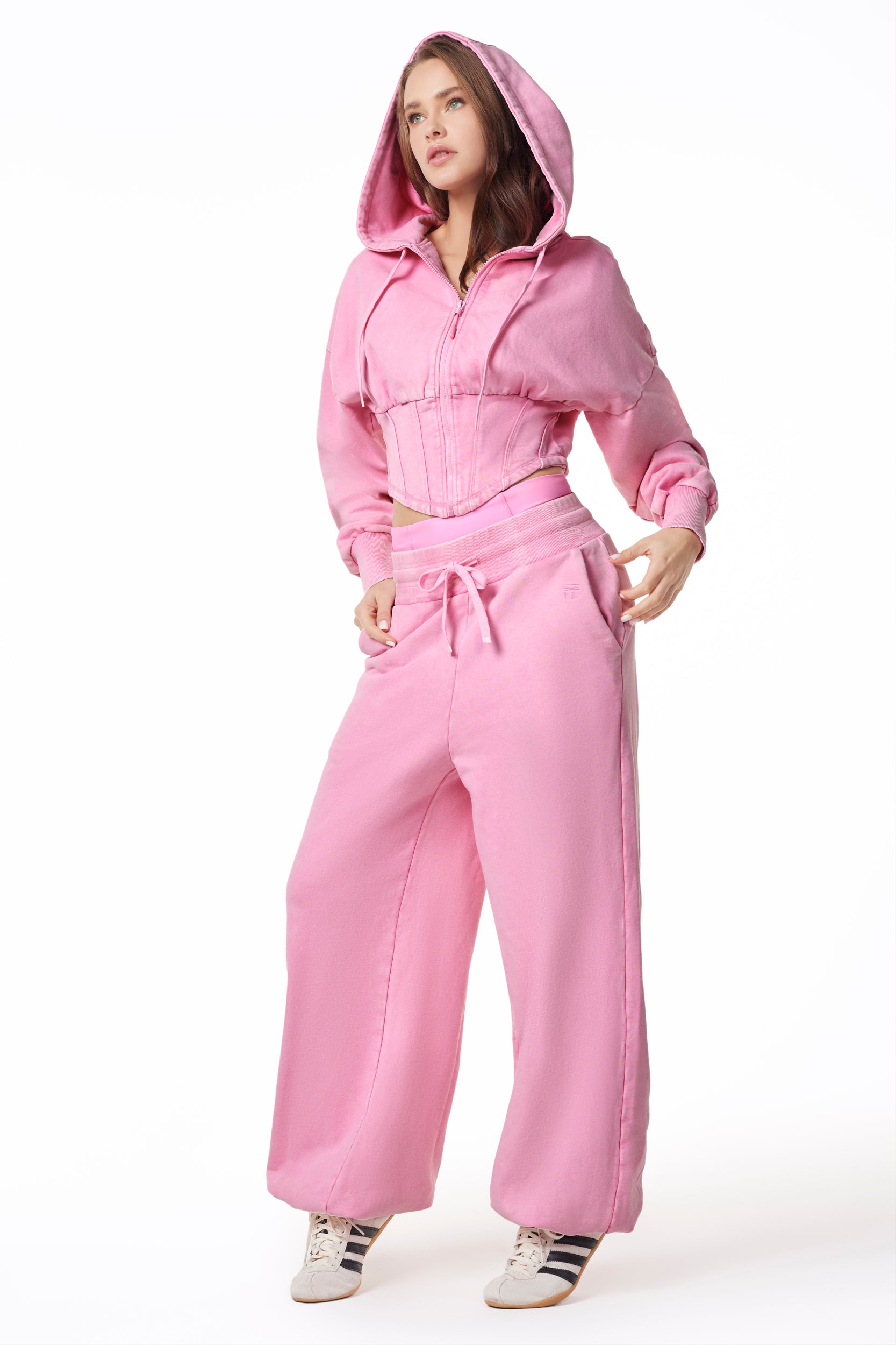 The double-drop waist is designed to move with your mood: wear it high, mid, or low on the hips for that effortless sag-with-no-sag look. Relaxed through the leg with a modern balloon silhouette, the shape stays intentional thanks to a banded bottom with a hidden elastic cuff, placed perfectly above the ankle. The result: volume without drag and a wide leg you won’t trip on.