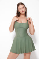 If you loved the Tokyo Dress, meet her sister — the Narita Tank Corset Dress. Same sculpted silhouette, same game-changing fit, but with self-filled panels instead of sheer mesh for a little more coverage and confidence. Sleek, sleeveless, and made to move, Narita brings that elevated edge to every match, game, or outing — all while keeping you cool, comfortable, and ready to perform.